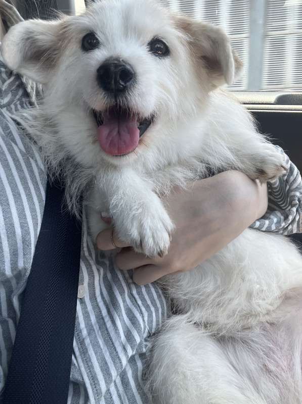 Bonnie is a calm girl who loves to be near you, without being needy. She gets along well with other dogs and people, never barks, and is estimated to be around 5-7 years old. She’s equally happy napping in the sun as she is going for sniff walks around the neighborhood. We think she’s a corgi-terrier mix.