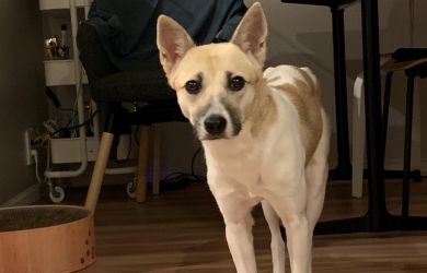 Bonnie is a calm girl who loves to be near you, without being needy. She gets along well with other dogs and people, never barks, and is estimated to be around 5-7 years old. She’s equally happy napping in the sun as she is going for sniff walks around the neighborhood. We think she’s a corgi-terrier mix.