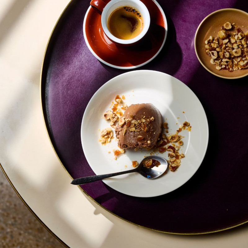 Chocolate fans, they didn’t forget you. The dark chocolate cashew mousse (¥1,400), made without dairy and topped with salted hazelnut praline, has enough depth to hold its own next to a glass of red wine.