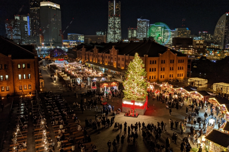 Yokohama’s Red Brick Warehouse Christmas Market is worth the short train ride on its own. This year’s theme is “Time,” marking the site’s 110-year history with a 12-meter tree under a 30-meter “starry sky” roof of lights. German-style huts sell sausages, pretzels, hot wine and gifts, while new areas like Christmas Gate at Shinko Central Square and Christmas Village at Red Brick Park add extra light displays and strollable space.