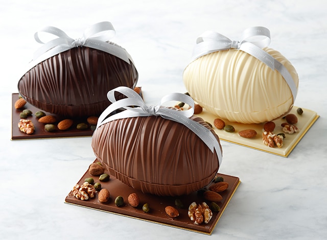 Head over to the prestigious Marunouchi neighborhood of Tokyo where the Palace Hotel’s Sweets & Deli Shop is selling sculpture-like chocolate eggs. Coming in white, milk and dark chocolate, they are almost too beautiful to eat. But when you do, you’ll find a handful of crunchy, chocolate-covered almonds inside.