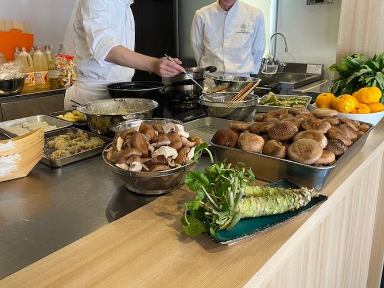 Chefs from the Tokyo-to Nihonchori Ginoushikai prepared the dishes, and their presence behind the open counter gave the event a relaxed, almost kitchen-table feel, with casual exchanges replacing formal explanations.
