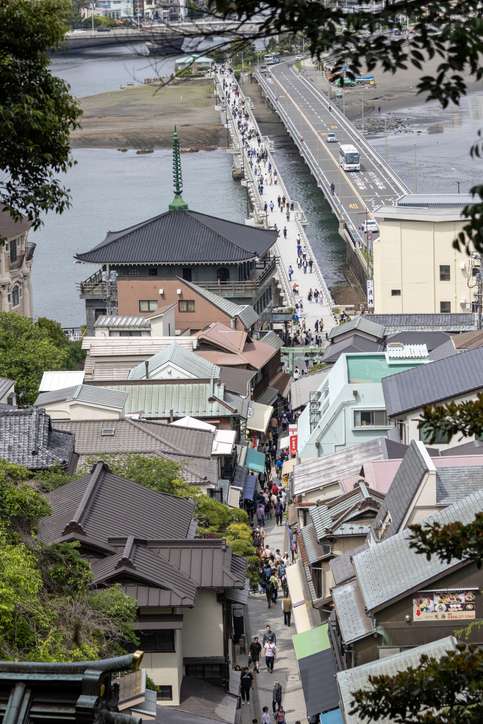 While technically part of Fujisawa, Enoshima has an identity all its own. Approaching the island via the Bentenbashi Bridge, it emerges from Sagami Bay like a storybook scene, famously captured in Hokusai’s prints. A full Enoshima day trip can include shrine pilgrimages, cafe stops, natural wonders and local delicacies.