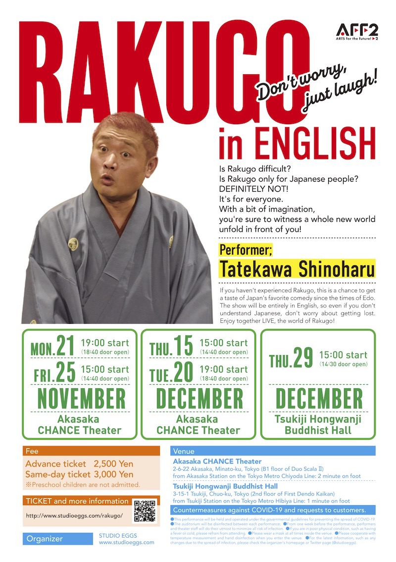 If you haven’t experienced Rakugo, this is a chance to get a taste of Japan’s favorite comedy performance since the times of Edo.  The show will be entirely in English, so even if you don’t understand Japanese, don’t worry about getting lost.  Enjoy together LIVE, the world of Rakugo!