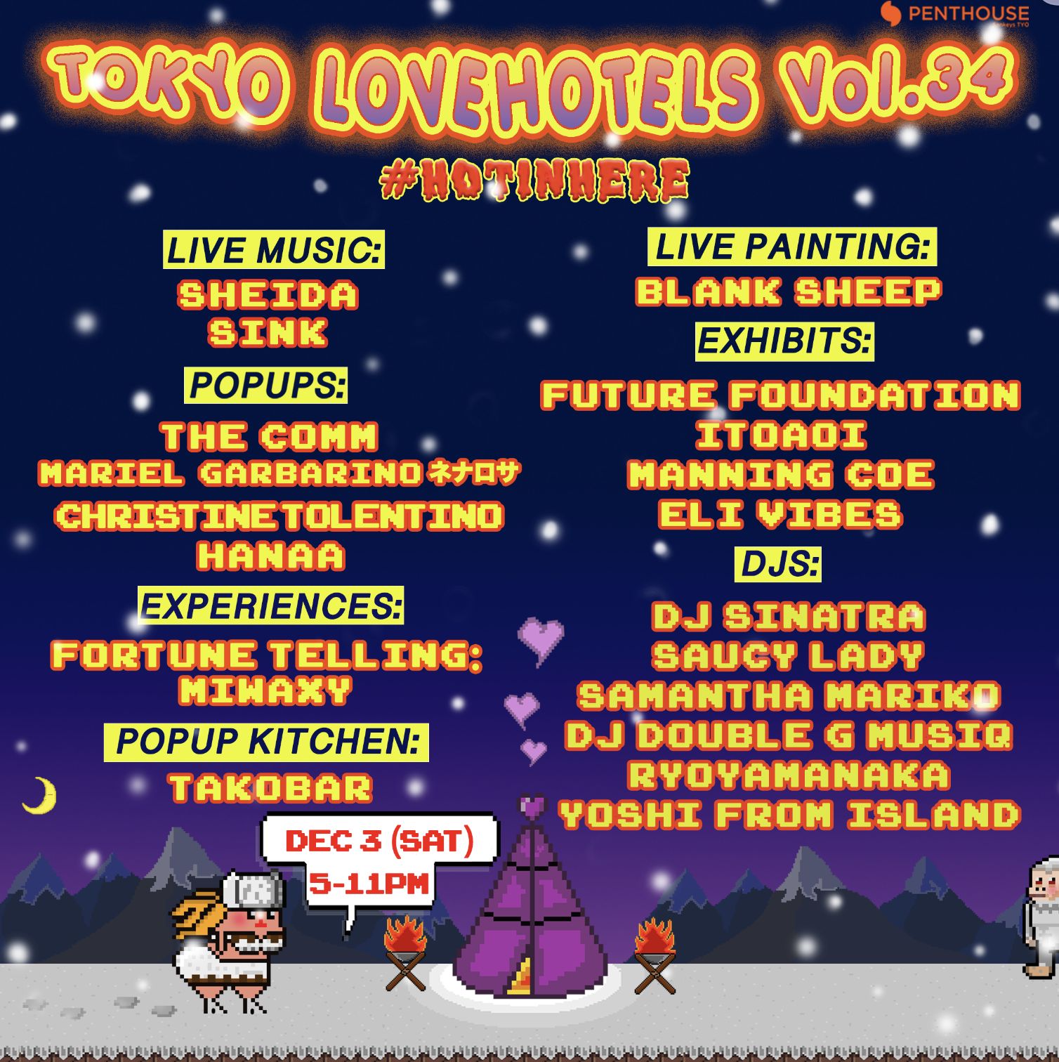 TOKYO LOVEHOTELS is an events organization based in Tokyo, promoting local and international talent. Their events provide a space for popups, artists, and live music, allowing people to connect with other creatives while on the dancefloor.