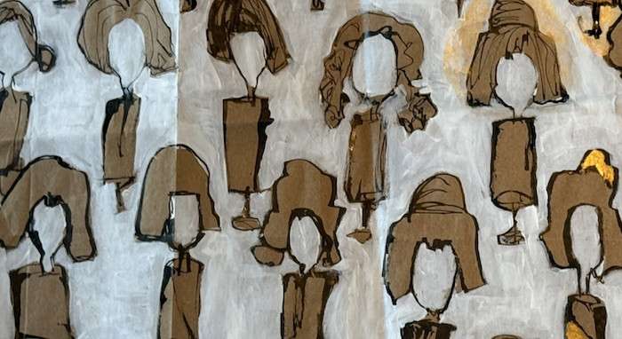 Inspired by the quiet spirit of kokeshi dolls, she introduces these feminine figures as recurring motifs—icons of memory, care, and continuity. Their presence draws attention to stories often overlooked, asking what it means to be seen, held, and remembered.