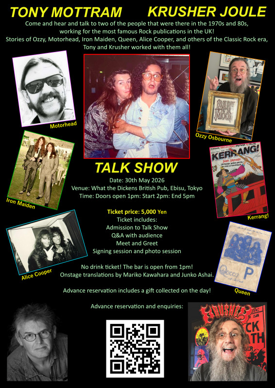 Come and hear the talk of two people who were at the frontline of Rock publications in the 1970s and 80s. Having worked with legendary artists like Iron Maiden, Queen, Alice Cooper, and others, Rock photographer Tony Mottram and album cover designer Krusher Joule will share their insights into working with Rock and Pop’s elite. From photographing Bowie and Prince to designing album covers and tour programmes for Blondie, come listen to their wild stories.