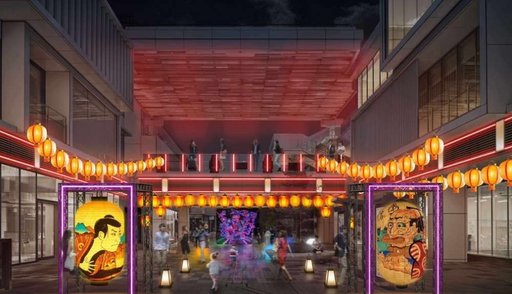 The concept is straightforward yet layered: a night market imagined as a meeting point of cyberpunk aesthetics and centuries-old Japanese motifs. Visitors will walk through a corridor where paper lanterns cast warm shadows, before the scene shifts into neon-lit installations that nod to the futuristic yet retro aesthetics of cyberpunk fiction.