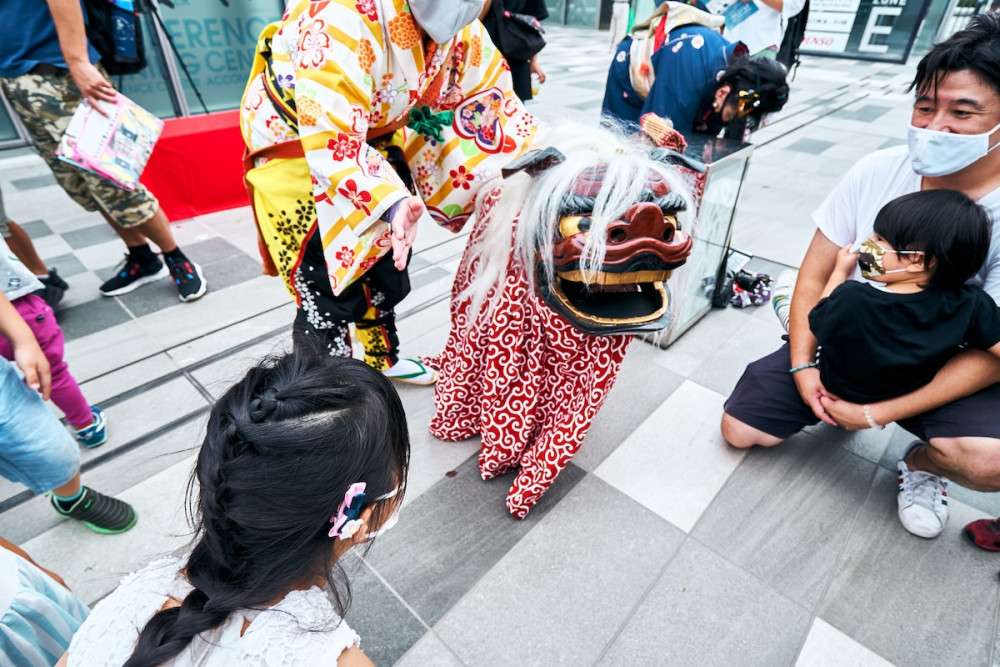 Elsewhere, the evening opens into play. A free-to-join arcade corner offers games from competitive titles to casual favorites, with live commentators on selected nights to give the feel of a tournament. Around the walkways, Ota Ward’s own makers set up “cyber yatai” stalls, and roving performers—samurai actors and lion dancers among them—bring traditional motifs into the flow of the night. Together, these moments anchor the spectacle in both pop culture and local character.
