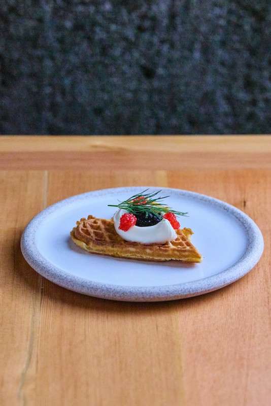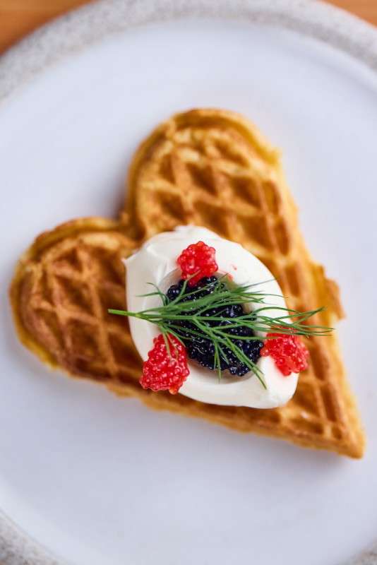 Lumpfish & Capelin Roe, Waffles, Crème Fraîche & Red Onion