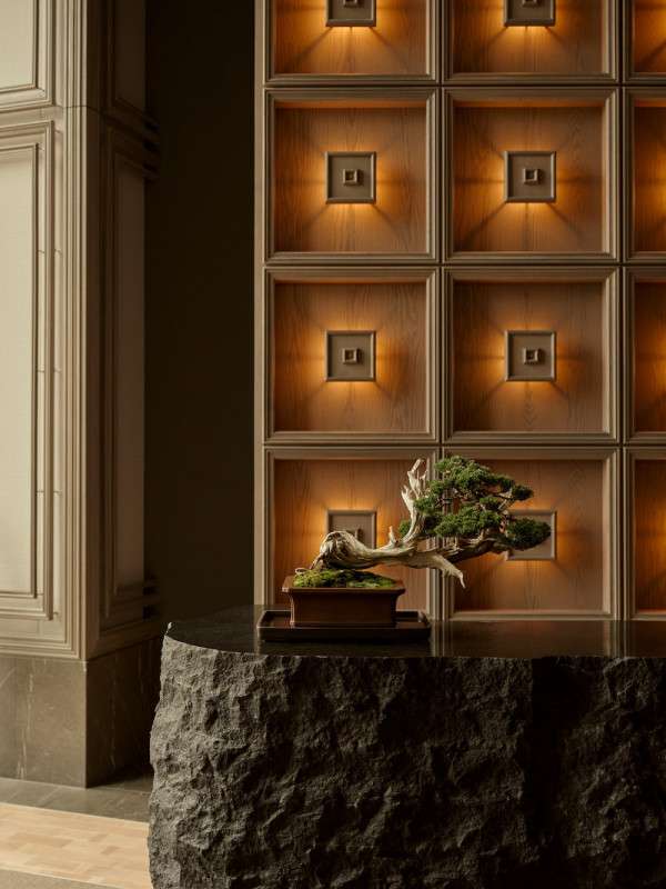 More than 15 bonsai pieces by TRADMAN’S BONSAI appear throughout the property, including the collective’s first Christmas-tree inspired “Festive Bonsai” at the Level 5 reception. Displays rotate weekly, adding up to more than 100 variations across the season.