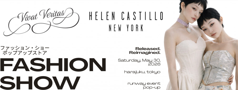 On May 30, 2026, Harajuku will be the setting for a rare creative encounter: Helen Castillo, three-time finalist on the hit American television series Project Runway, makes her Tokyo debut alongside Vivat Veritas, Tokyo’s sustainable kimono upcycling label.
