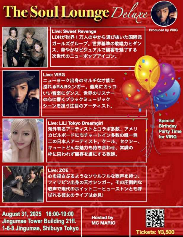 Get ready for a soulful night of music, dancing, and celebration at Soul Lounge Vol. 4, happening on Saturday, August 31 at the stylish Jingumae Tower Building near Omotesando.