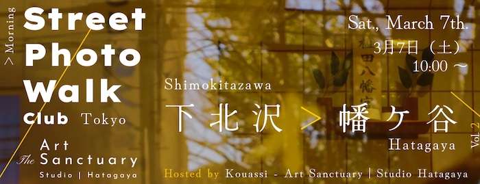 Join a morning of urban exploration and creative exchange on March 7, with the second volume of the Street Photo Walk series. Starting at Shimokitazawa Station, participants will trek toward Hatagaya, discovering vibrant local neighborhoods through the lens. To sharpen creative focus, a specific photography theme will be announced at the start of the walk, encouraging attendees to observe the city more deeply and shoot with intentionality. The event follows a structured schedule, beginning with a two-hour shooting session followed by a lunch and photo critique at a private studio. This small-group format (limited to 6 people) is designed for all skill levels, from beginners to advanced photographers using anything from smartphones to film cameras. Beyond photography, the hosting community, Art Sanctuary Studio, aims to foster a long-term creative hub with future workshops planned for letterpress, riso printing, and bookbinding.