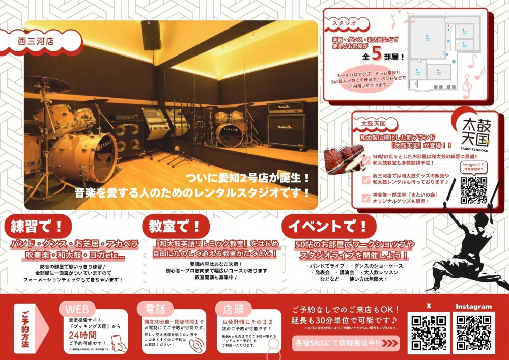 We’re excited to announce the opening of Taiko Tengoku, a new rental studio space in Anjo, Aichi — built for creators, performers, and learners of all kinds. Whether you’re into Japanese drumming, music, dance, theater, or workshops, our versatile new facility is designed to support creative expression across generations and genres.