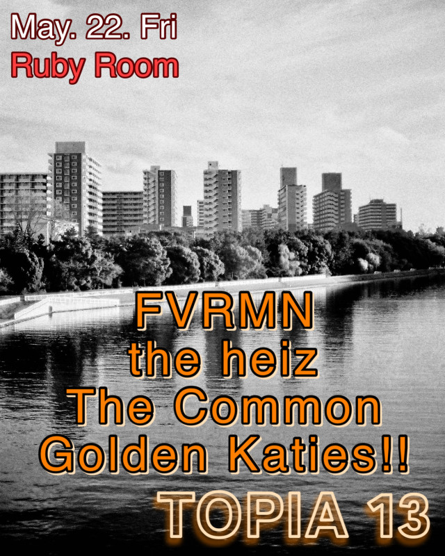 TOPIA is a regular event for indie and alternative music lovers, taking over the intimate Ruby Room in Shibuya. For this upcoming TOPIA 13, the stage will host an eclectic mix of guest bands performing styles ranging from alt-rock and punk to psych-rock, rock&roll and more.