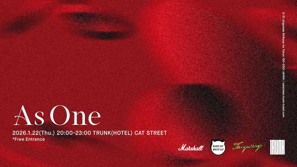 TRUNK(HOTEL) CAT STREET hosts As One Vol.2 on January 22, 2026, transforming its main lounge into a one-night live music space where underground and mainstream scenes intersect. Produced by artist Nao Kawamura, the event brings together a rotating lineup of genre-crossing performers.