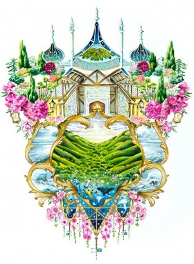 Although predominantly known for her watercolor landscapes — “annoying because it’s been delegated as a hobbyists medium” — more recently her attention has focused on creating things that people can integrate into their lives more easily than a framed painting. Collaborating with a local craftsman, for example: he carved wooden tableware using traditional methods before she added her designs on them. Currently she is working on a representation of the world of Greek myths as carved puppets for an upcoming group exhibition alongside Natalia Lewandowska and Tsugumi Kaihiko at Commune 2nd in Aoyama titled “Women and Flowers.”