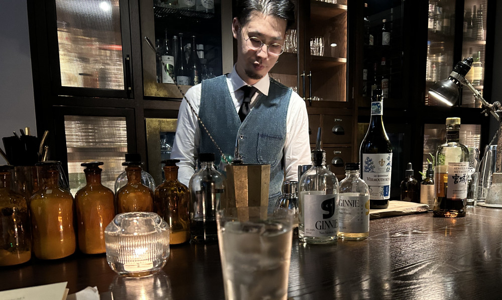 After a slow sip of your hinoki highball, candle flames waver as a train rumbles overhead. The bartender’s metal shaker rattles in sync with the passing cars.Beneath the elevated tracks of the Chuo–Sobu Line, Low Non Bar sits inside a red brick viaduct, dim and intimate. You settle into a tall leather chair at the counter, close enough that your elbow brushes the guest beside you. From your seat, you watch the bartender prepare each drink slowly. A Negroni arrives made with the bar’s original gin, gentian cordial and white wine, finished with a scent you choose. He gestures to a glass distiller extracting jasmine. All mixers are zero proof, though you can choose how much alcohol, if any, to add. The trains keep passing overhead. You sit a little longer, noticing what isn’t there, and the calm that comes with it.