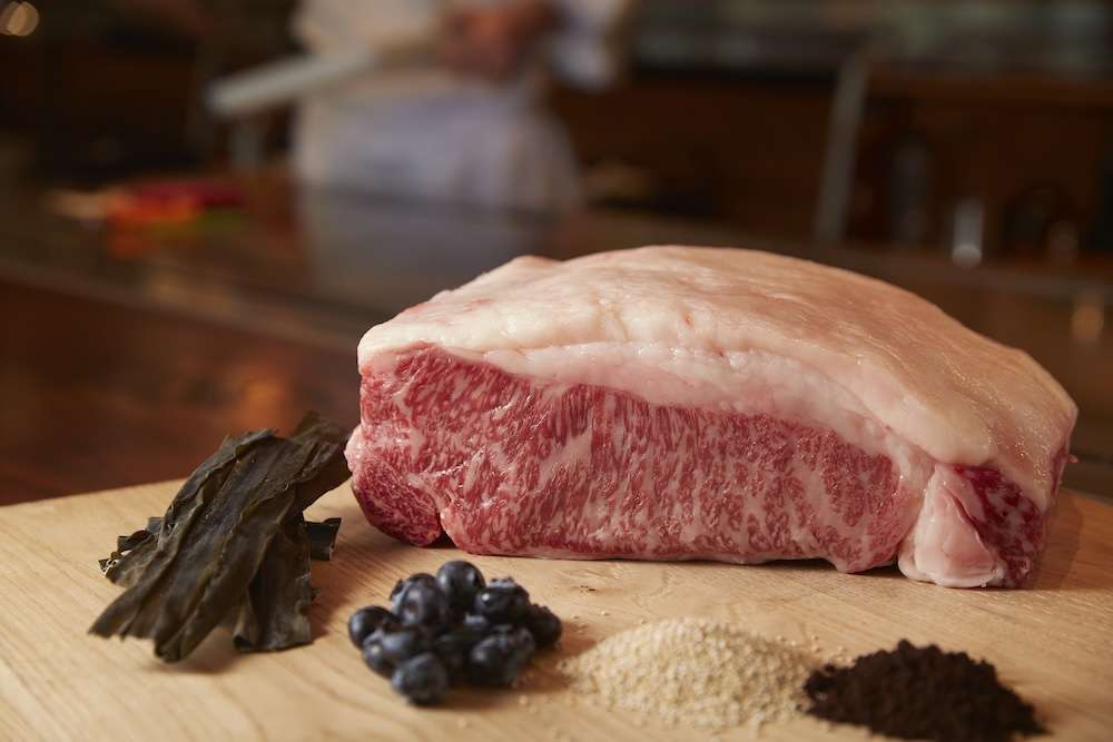 The centerpiece is Keyakizaka Beef, an original premium wagyu developed exclusively for the restaurant. This Kuroge wagyu comes from Akikawa’s Takeuchi Farm, the only wagyu farm in Tokyo. The cattle are fed a superfood blend straight out of an LA mom’s cupboard: quinoa, seaweed, cacao and blueberries. The simple idea is: if superfoods are good for us, they’re good for cows. The chef and his team visit the farm every month to oversee the process firsthand.