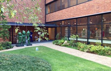 Further down, at the bottom of the hill is the Hasegawa Machiko Art Museum. Edged by a tidy lawn, the modern brick building is easily identified by the statues of the Sazae-san family — a prime selfie spot. Inside, the museum displays a permanent collection of around 800 pieces of Hasegawa’s artwork alongside other related items, which were donated by Hasegawa and her family. Hasegawa was a keen collector of artwork: much of her life’s collection, from Japanese and Western-style paintings to ceramics and sculptures, are also on display at the museum.