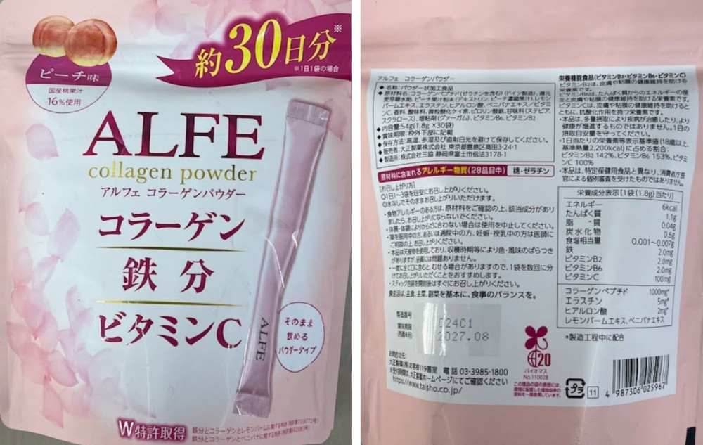 For firmer, more radiant skin tomorrow, look no further than Alfe Beauty Conc Powder. This powder-type beauty supplement features easily dissolvable collagen peptides and iron, delivering intensive skin support in a convenient stick format. Infused with 12% domestic peach juice, it offers a rich, fruity flavor that makes it a pleasure to drink. Each individually wrapped stick is perfect for on-the-go beauty care.