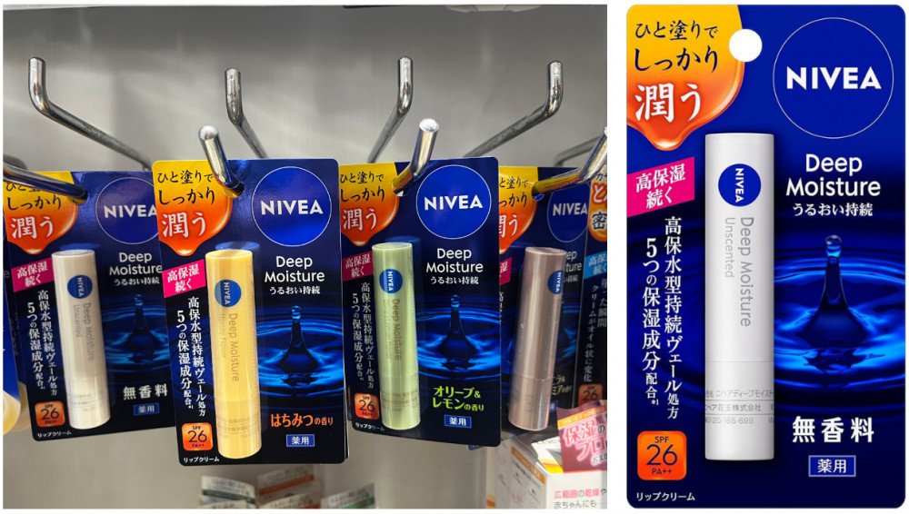 Nivea Deep Moisture includes a complete line of lip care products, with two balms, including a ‘melty type’ that turns into oil upon application. Both formulas are packed with moisturizing ingredients and SPF protection and are considered quasi-drugs in Japan. Each line offers an unscented, honey, olive and lemon, and vanilla and macadamia flavor. Under the same line, there’s a potted lip mask for overnight use that seals moisture in as you sleep, healing dry and cracked lips.