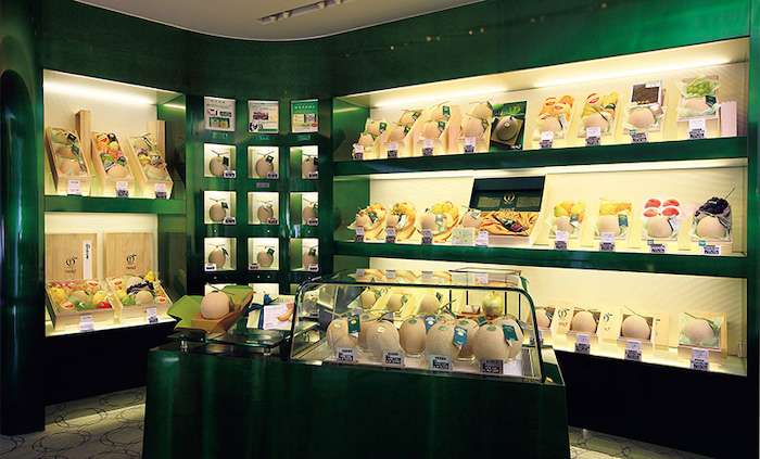 Luxury fruit shops sell differently from supermarkets. Here, a single melon may rest alone in a satin-lined box. You might find these particular items in-store: