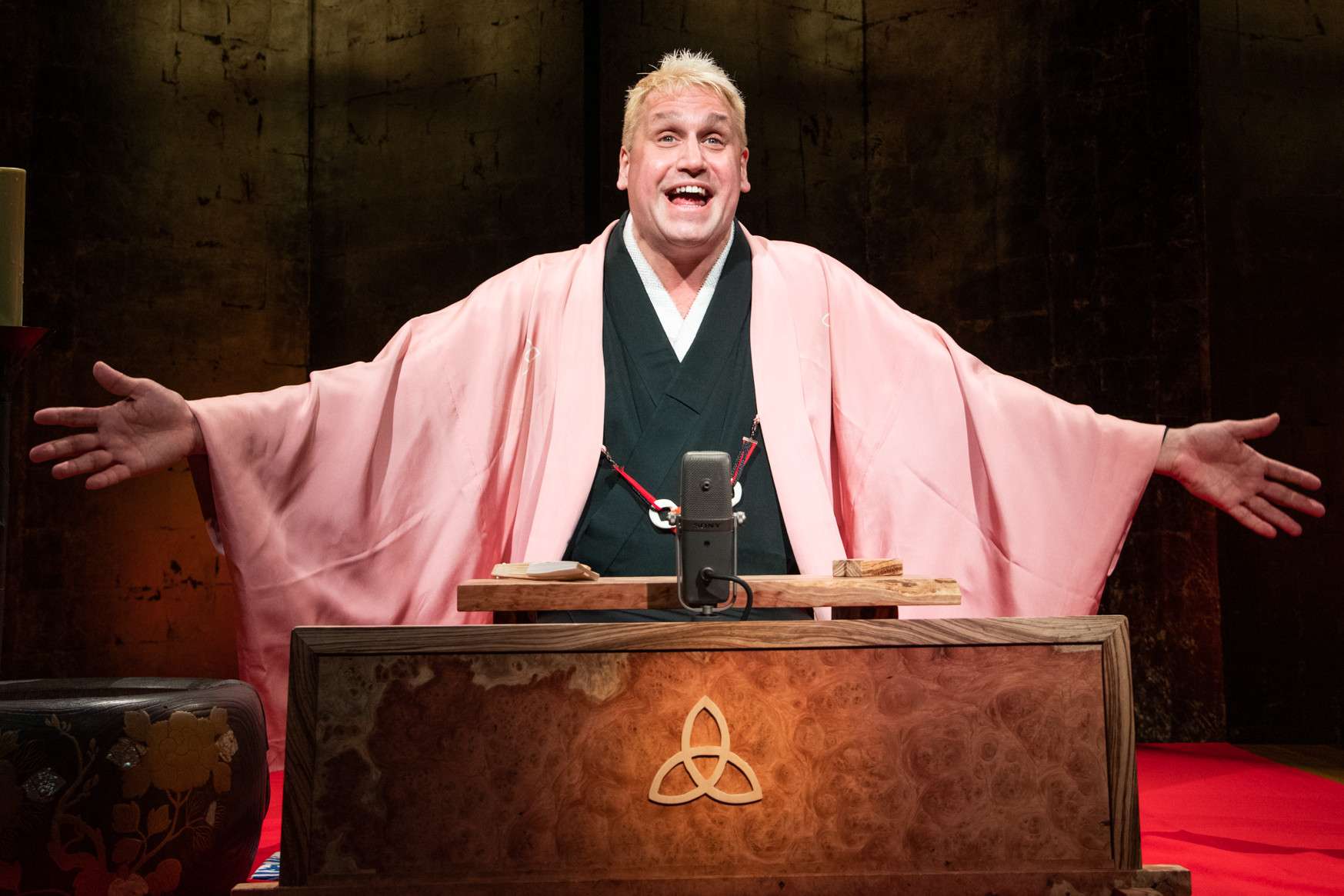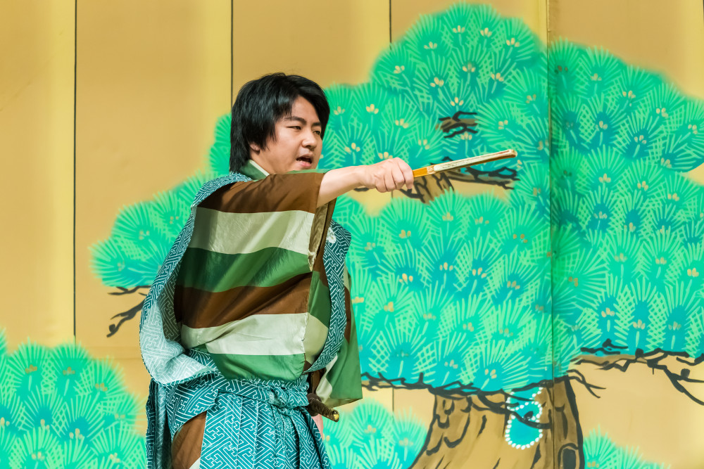 Rakugo is a form of seated storytelling performed by a single narrator. Using only a fan and small cloth as props, the performer voices multiple characters. Stories are humorous and end with a punchline.