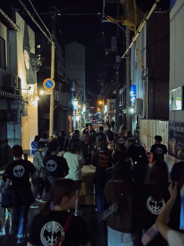 While cycling earlier that afternoon, I passed a residential street where neighbors were hanging ropes and paper ornaments between houses, creating what looked like a spiderweb as they prepared for a festival. Later, during the ghost tour night walk, I heard drums echoing through the alleys as another district practiced for a matsuri parade where local children pulled a large taiko drum across the city. I had not planned my visit around any event, yet moments like these kept appearing without warning.