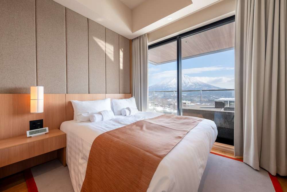The room looks directly at Mt. Yotei, magnificent under snow. From the start, the attention to detail caught my eye when I saw the fully equipped kitchen came with Japanese knives. Choices in every corner of the room, from the toiletries to the bedding, are curated with intention, down to the motorized television that lowers from the foot of the bed. Being a true ski-in ski-out property with the lift entrance right outside, coming back to a warm room for lunch between sessions felt homely and luxurious at the same time.