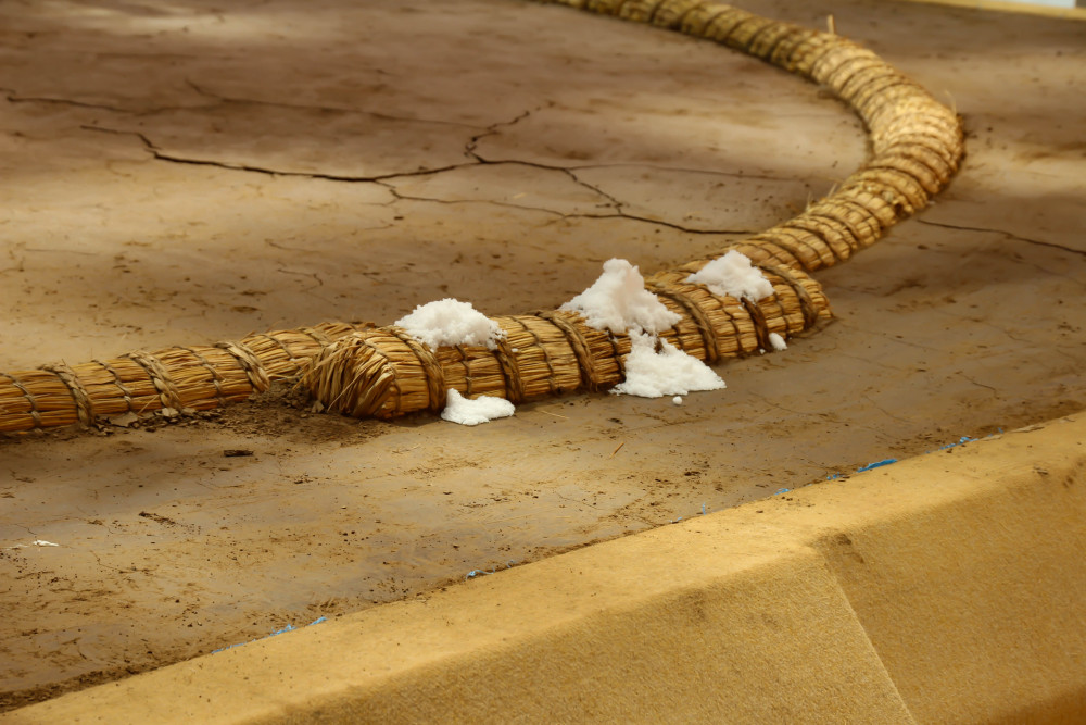 The sumo ring, or dohyo, is bordered by a straw rope called tawara. A new ring is made for each of the six professional tournaments held throughout the year. Deeply rooted in Shinto tradition, the dohyo is considered sacred. A dohyo-matsuri (ring purification ceremony) is held before each tournament. Wrestlers also purify themselves before each bout, finishing with a symbolic shubatsu salt toss.