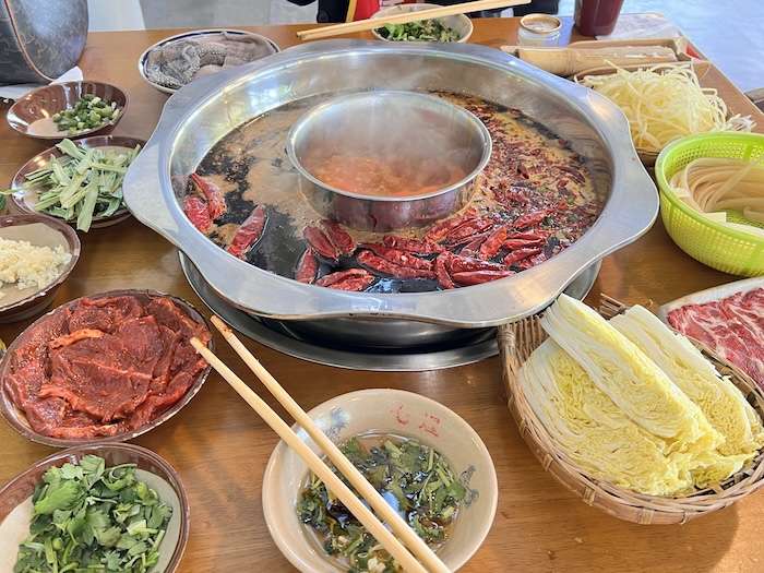 The authentic flavor of Chongqing hot pot can be summed up in three words: fragrant, spicy and garlicky. The dipping sauce, known as “oil dipping,” is essential. Pour a generous amount of sesame oil into the bowl, add a tablespoon of minced garlic, chopped cilantro (skip it if you’re not a fan) and chopped green onions. Finish with a few drops of soy sauce for extra depth of flavor.