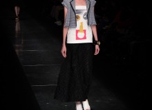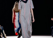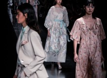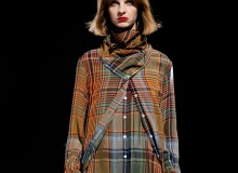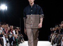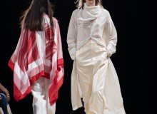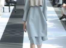 For this season, Takayuki Chino was inspired by the elegant, effortless French way of styling clothes. The collection featured all the Cinoh codes and signatures: clean lines, exquisite use of color blocking, playful yet mature garments and rich, high-quality materials. There was an emphasis on the typical bourgeois chic , with tailoring and relaxed office-wear dresses in neutral hues of off-white, beige and gray. Indigo-dyed shirts and red and beige flannel button-up shirts that doubled as oversized outerwear topped off the creations. With a flawless pattern technique and contemporary elements, Cinoh delivered a très chic collection.