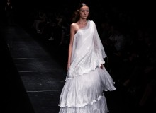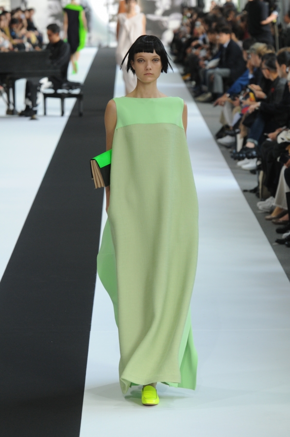 With a fashionably late start to the show at the Museum of Contemporary Art in Tokyo, the 55-look collection that emerged was simply outstanding with its clean lines, modern cuts and composed, sophisticated pieces. Koshino’s sense of experimentation through garments bridged the gap between haute couture and ready-to-wear. Gowns engraved in color blocking with seas of warm tones and vibrant hues prove Koshino truly understands the conceptual deconstruction of colors.