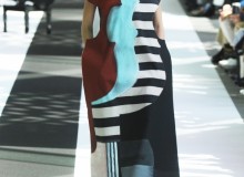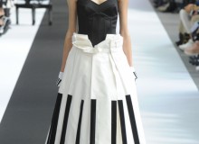 The show’s concept was “Play Around the Music,” with an appearance by Japanese pianist Yukio Yokoyama. The catwalk imitated a keyboard, with each model representing a piano key. Koshino transports us to a music sheet of composed modernity. From her keyboard-inspired monochrome pieces to her bold use of colors and volume, Koshino promises us relaxed, straightforward harmony in a chaotic world.
