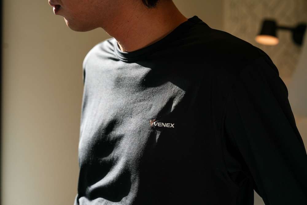 VENEX recovery wear uses proprietary PHT fabric with nano-platinum particles and is certified in Japan as a general medical device, designed to support circulation and muscle recovery during rest.